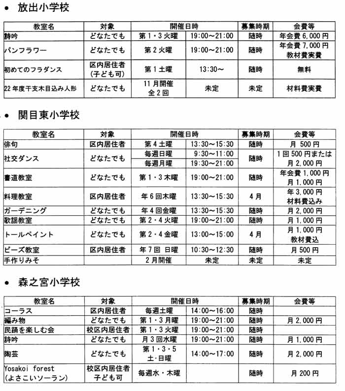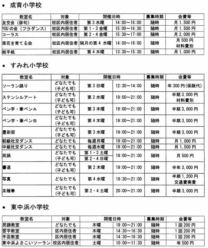 成育女性会書道クラブ場所:成育小学校(1.5-19) 日時:第1・第3水曜10:00〜12:00 電話 6933-6791 |