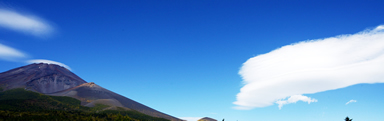 10月3日丹沢に登るつもりで、出かけたのですが、秦野のトンネルを抜けた時、 正面に富士山が大きく見えたので、これは富士山は快晴だろうと思 い、行き先 を富士山の五合目にしました。水ヶ窪の大駐車場で山菜蕎麦を食べ、富士山を見 ると、山頂に傘雲がかかり始め、その横には8時頃に出来た 傘雲が東の方に流れ ていました。2月の大雪で、まだ山頂近くに残雪が見られます。いつもなら、富 士山頂は雪が着く時期です。