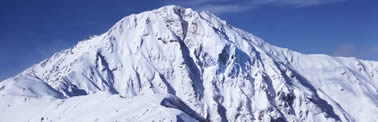後立山(白馬岳)から黒部峡谷を挟んで、まだ多くの残雪に覆われた立山、剣岳方面がはっきり見えます。この時期、黒部立山アルペンルートが開通しています。また、立山の弥陀ヶ原では10mを超える雪の壁が雪原を縫うように室堂まで通じています。