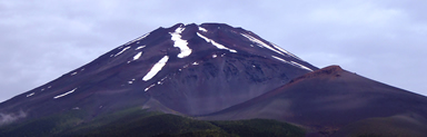 7 月末でも残雪があります。大きな宝永火口は徳川吉宗が将軍になる9年前の1707年に噴火したものです。